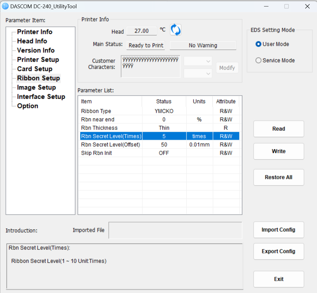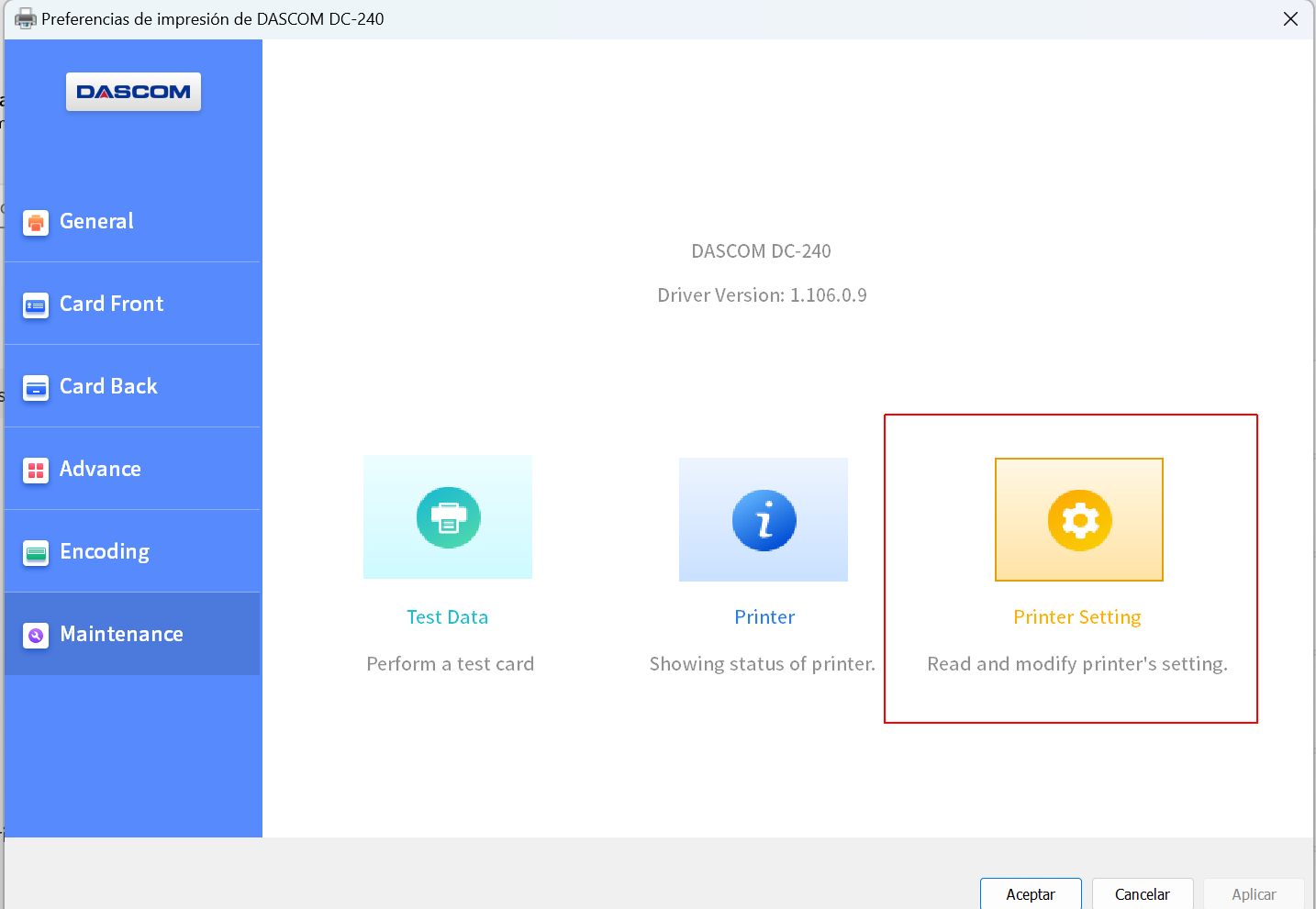 Selección de Configuración: En la pestaña Maintenance, selecciona Printer Settings y luego Ribbon Settings.